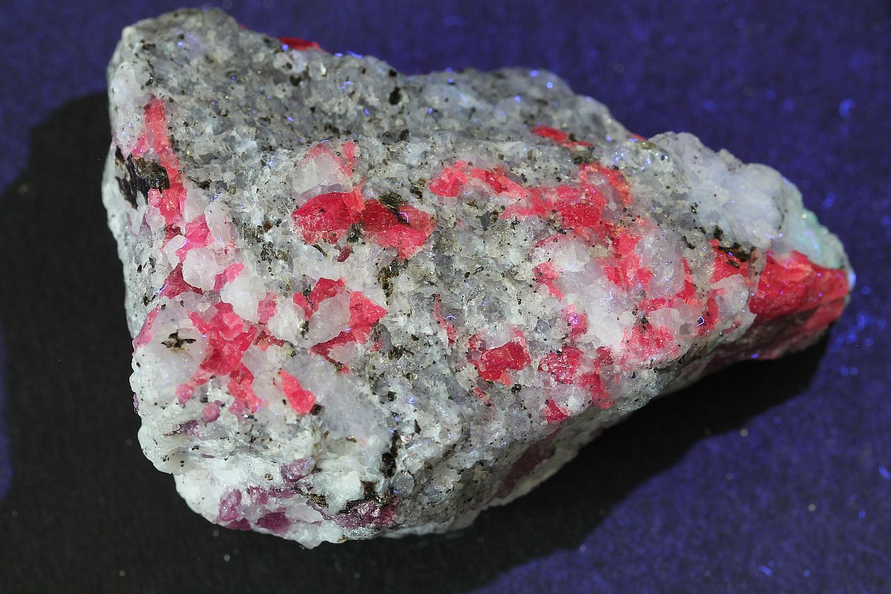 Die Mineralien wurden mit UV-Licht (365 nm) beleuchtet