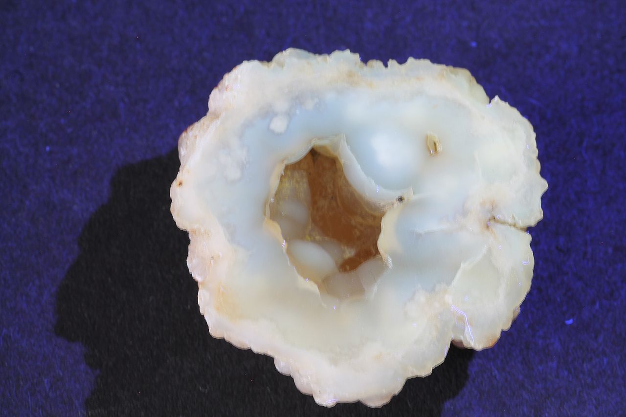 Bestrahlt man ein bestimmtes Mineral mit ultraviolettem Licht beginnt dieses Mineral zu leuchten. Dieser Vorgang heißt Fluoreszenz. Hierbei wird ein Elektron auf ein angeregtes Niveau gehoben und kehrt unmittelbar danach in den Grundzustand zurück. Dabei wird ein Photon im sichtbaren Spektralbereich abgegeben.